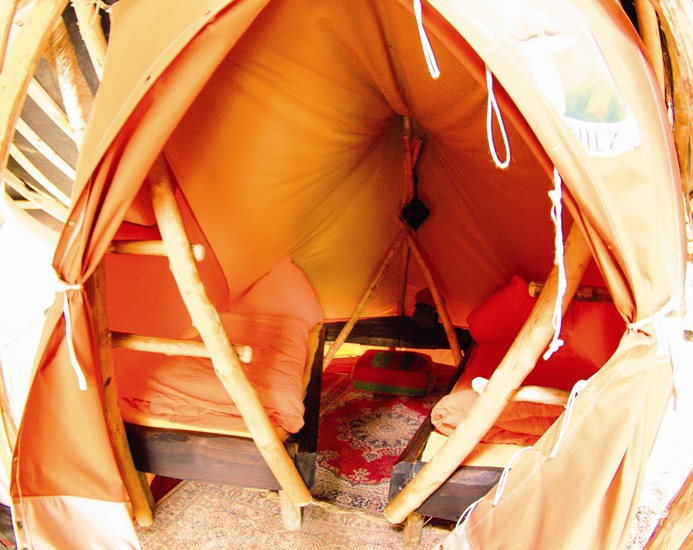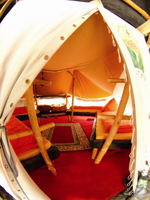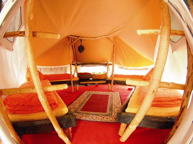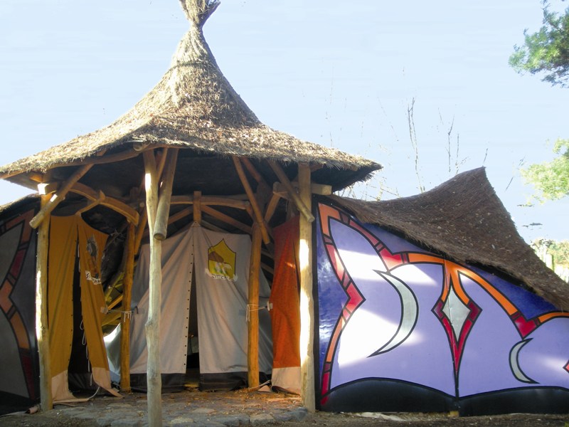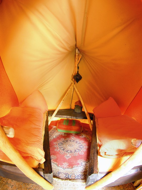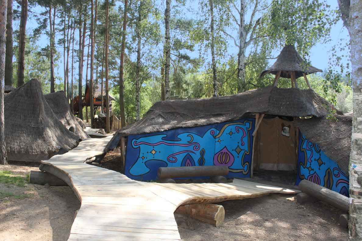 Unterhalb des Baumhaus-Hotels befindet sich das Waldsiedlum. Die orientalisch ausgestatteten Zwei- und Viermannalkoven bieten eine stimmungsvolle Übernachtungsmöglichkeit. (Speziell für Kinder gibt´s oberhalb der orientalischen Alkoven die Kinderschlafbaumhäuser für 2-3 Kinder!)