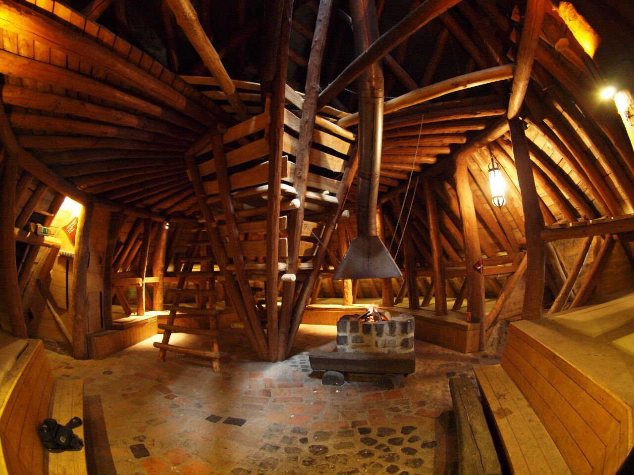 On a platform that surrounds the whole room, there are mattresses inviting you to chill out - but please don't forget to bring a sleeping bag for a cosy night!