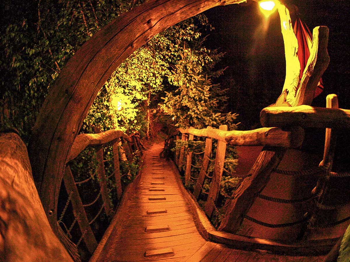 In den Zweigen unserer Bäume haben sich tatsächlich Elfen niedergelassen. Sie haben sich dort allerhand Mobiliar zusammengestellt. Wer genau hinschaut, entdeckt kleine versteckte Türen und Fester in der Umgebung der Abenteuerwildnis. Sie scheinen in der Geheimen Welt von Turisede einen Lebensraum entdeckt zu haben, der natürlich und magisch ist, wo Rechtwinkeladvokaten eben noch nicht alles beherrschen und den Zauber aus der Welt gescheucht haben.