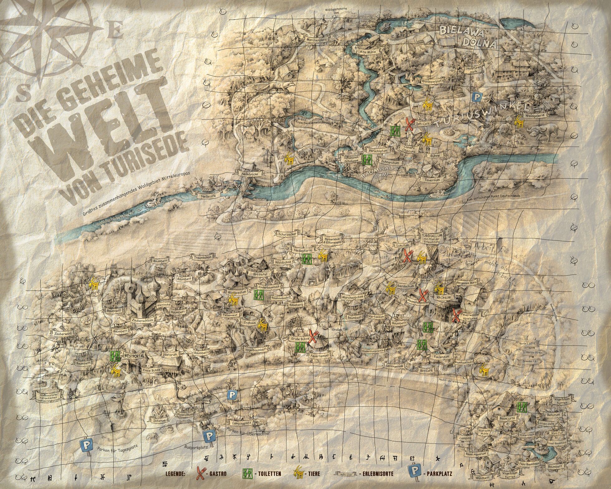 Hier seht ihr unseren Übersichts- und Orientierungsplan des Abenteuer-Freizeitparks "Die geheime Welt von Turisede" Kulturinsel Einsiedel - dem Ort für die Seele.