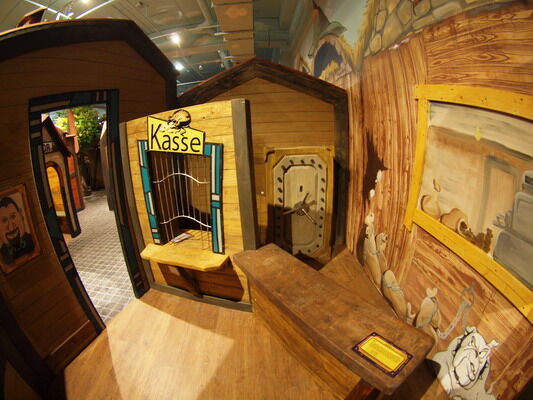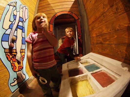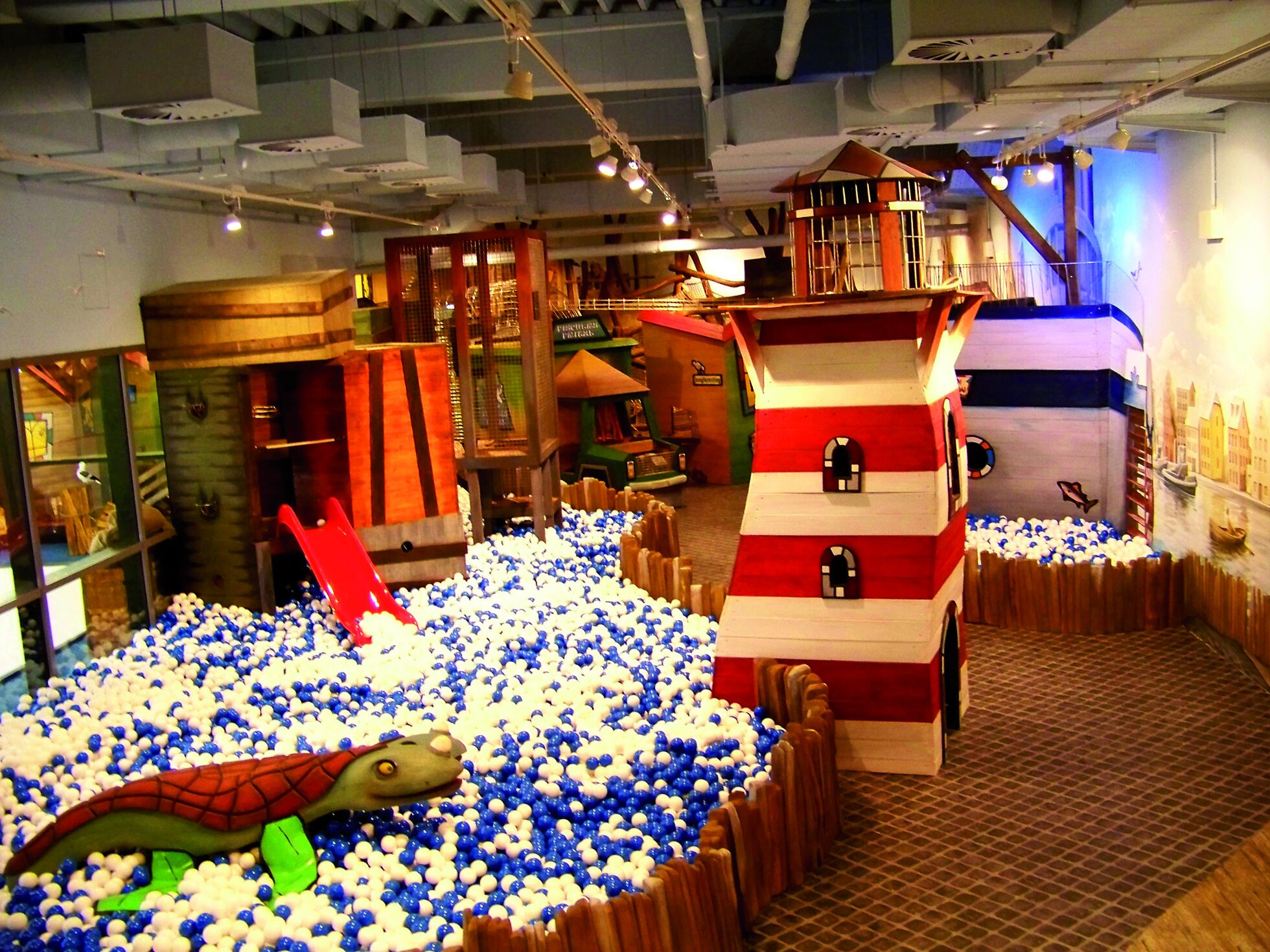 Ein schwebendes Luftschiff im Lichthof mit Kletteraufstiegen zum oberen Geschoss, Baugerüst mit Kugelspiel, Riesenspielschiff im Bällebad, die fast originale Werkstatt des Meister Eder mit Klettergang in Bandsägenoptik, Bauklotz-Spieltisch und Klangspiel-Flipper, eine komplette Etage mit Netztunnellabyrinth, Schiebetürenlabyrinth, Kino, versteckten Spielräumen und kniffeligen Aufgaben.