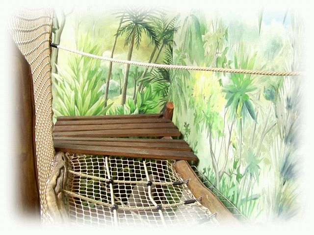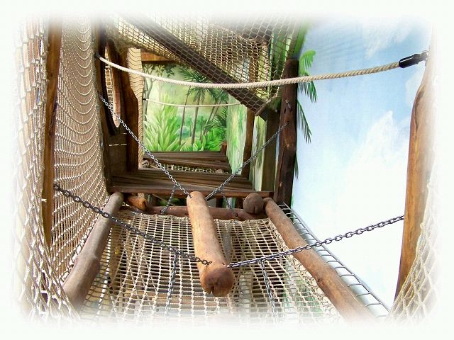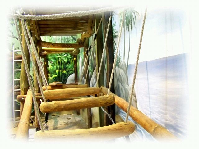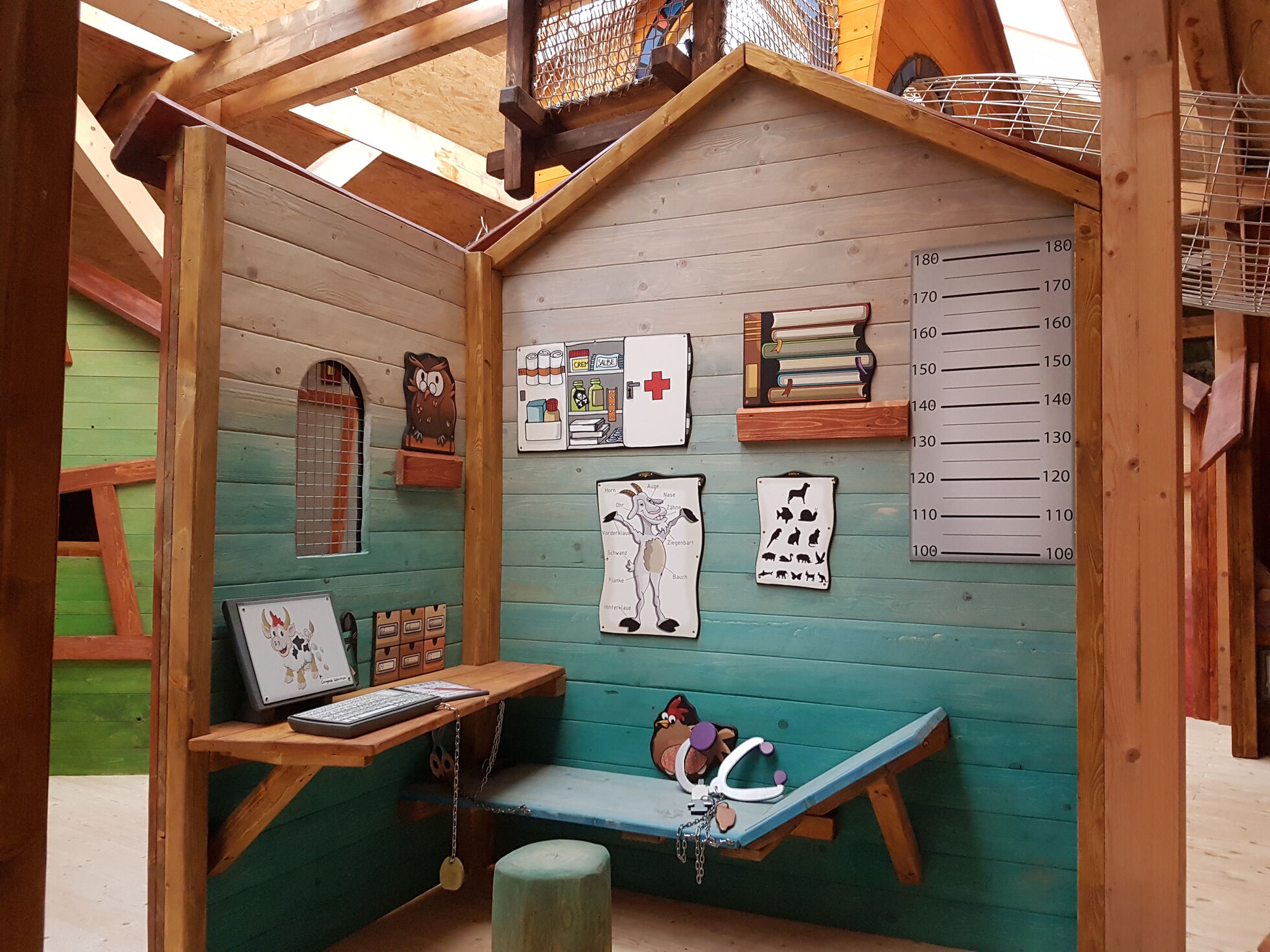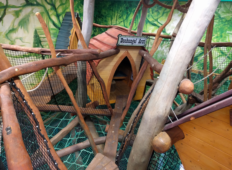 Hat man sich durch das Gewirr der Bäume getastet, entdeckt man in den Baum-Hüttchen kleine Ruhe-Oasen: hier lockt Joes Bar, dort ein tropisches Tante-Emma-Lädchen… und beim Dschungel-Doktor gibt es Kräutertränke und einen Seh-Test für den erschöpften Kletterer! Liebevoll detailierte Rollenspiel-Angebote bringen die Kinder ins Spiel miteinander.