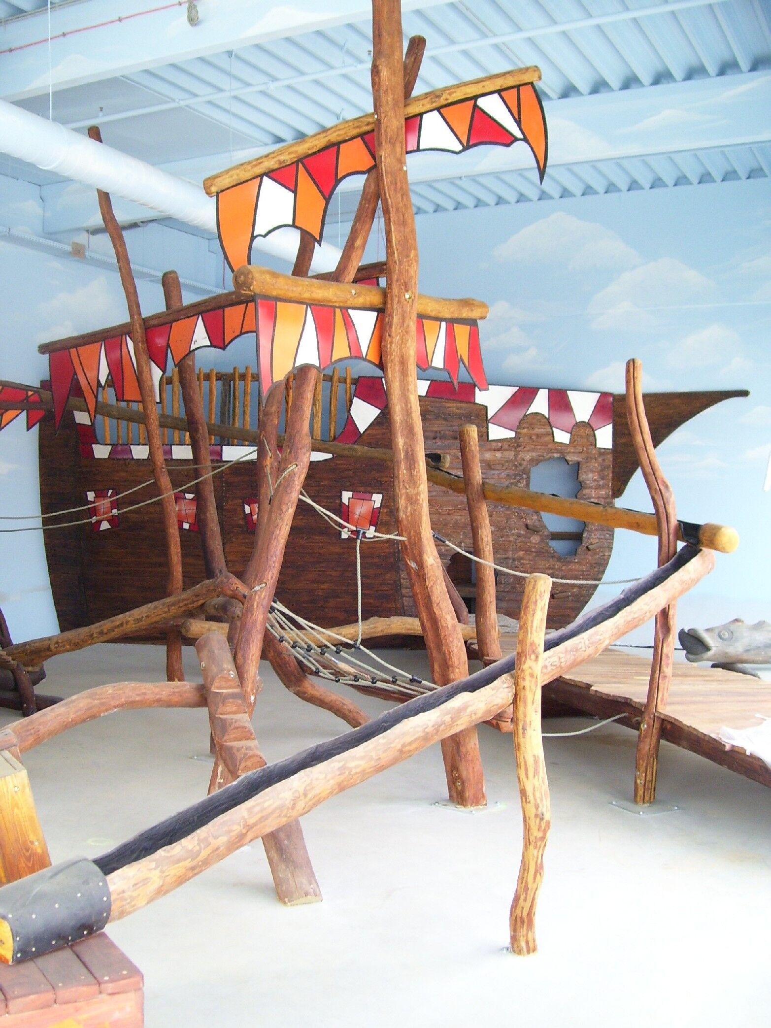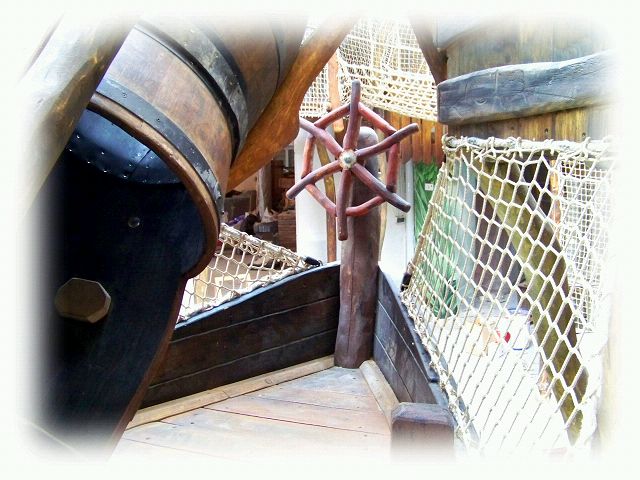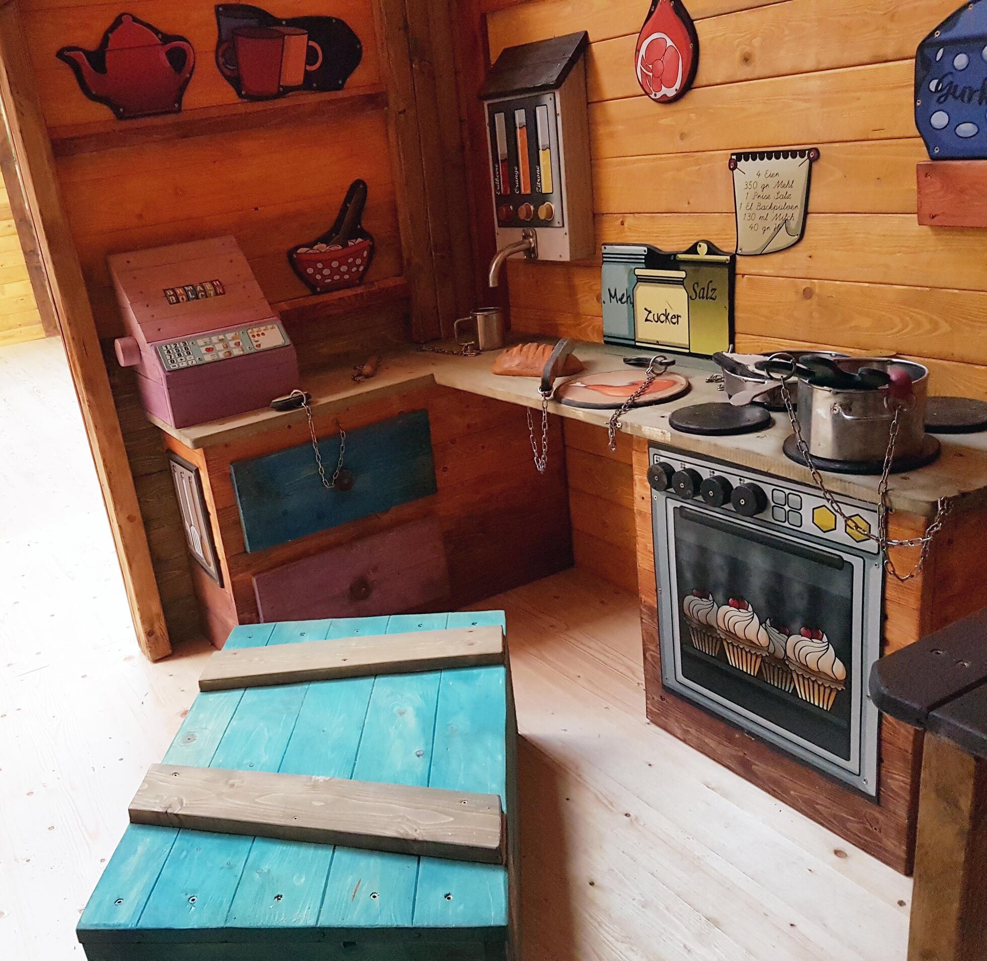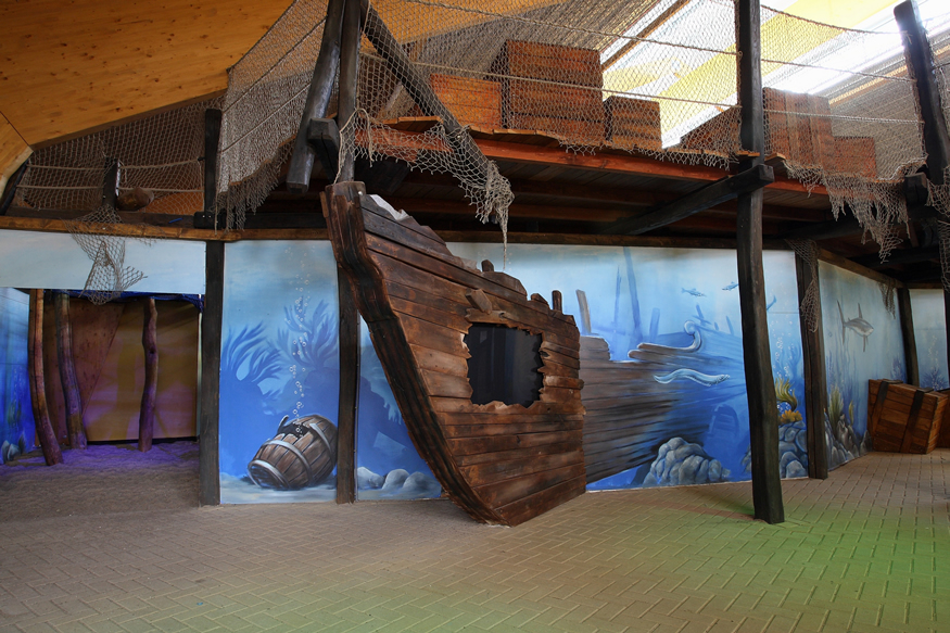 Auf 3 Etagen können sich kleine und große Leute ordentlich austoben. Im Erdgeschoss befindet sich eine Bühne mit Kulissenwand und ausreichend Platz für begeisterte Besucher. Das Obergeschoss beinhaltet einen Ruhe-/ Film- und Leseraum sowie Sitzbänke und Tische für lange Spielstunden. Puppenhaus und Schiffsburg im Dachgeschoss lassen Herzen höher schlagen und Köpfe kreative Spielideen entwickeln. In allen Bereichen gibt es zahlreiche Möglichkeiten zum Beklettern, Bespielen und Durchkriechen.