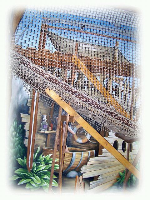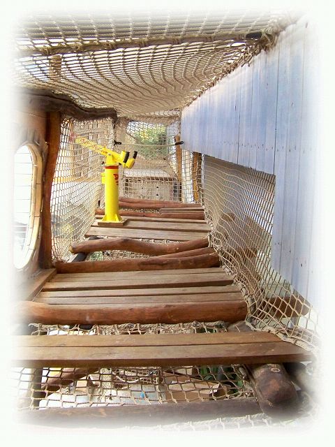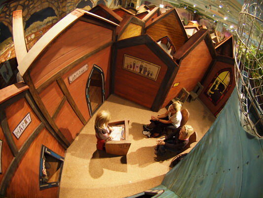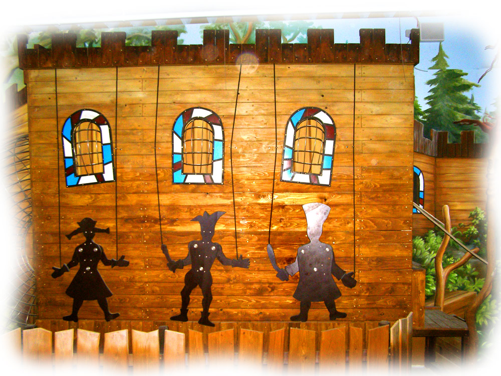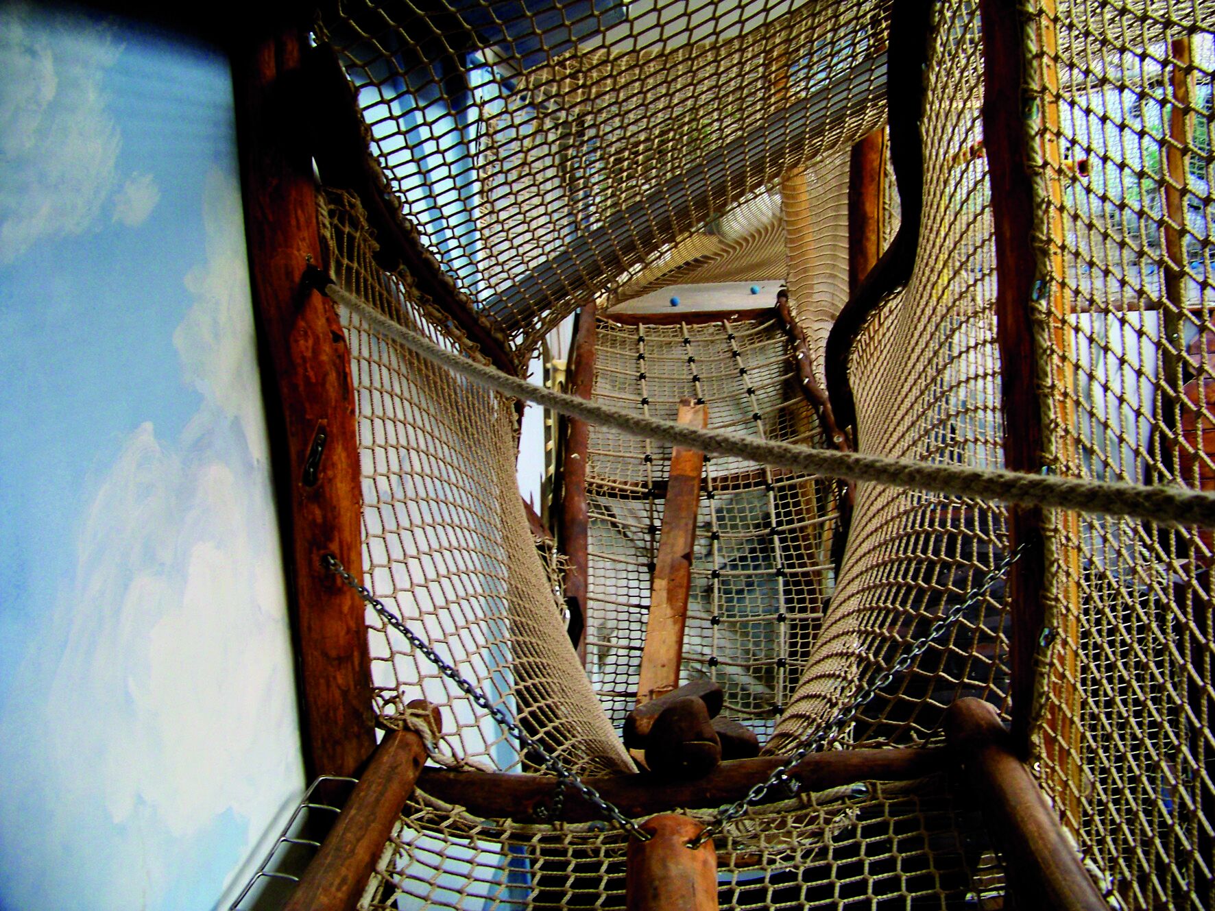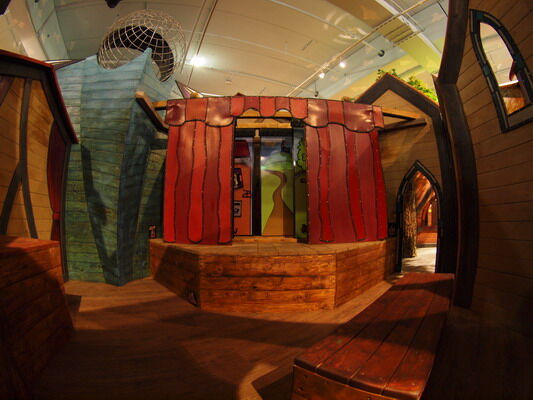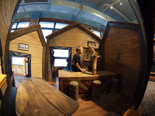 Auf 3 Etagen können sich kleine und große Leute ordentlich austoben. Im Erdgeschoss befindet sich eine Bühne mit Kulissenwand und ausreichend Platz für begeisterte Besucher. Das Obergeschoss beinhaltet einen Ruhe-/ Film- und Leseraum sowie Sitzbänke und Tische für lange Spielstunden. Puppenhaus und Schiffsburg im Dachgeschoss lassen Herzen höher schlagen und Köpfe kreative Spielideen entwickeln. In allen Bereichen gibt es zahlreiche Möglichkeiten zum Beklettern, Bespielen und Durchkriechen.