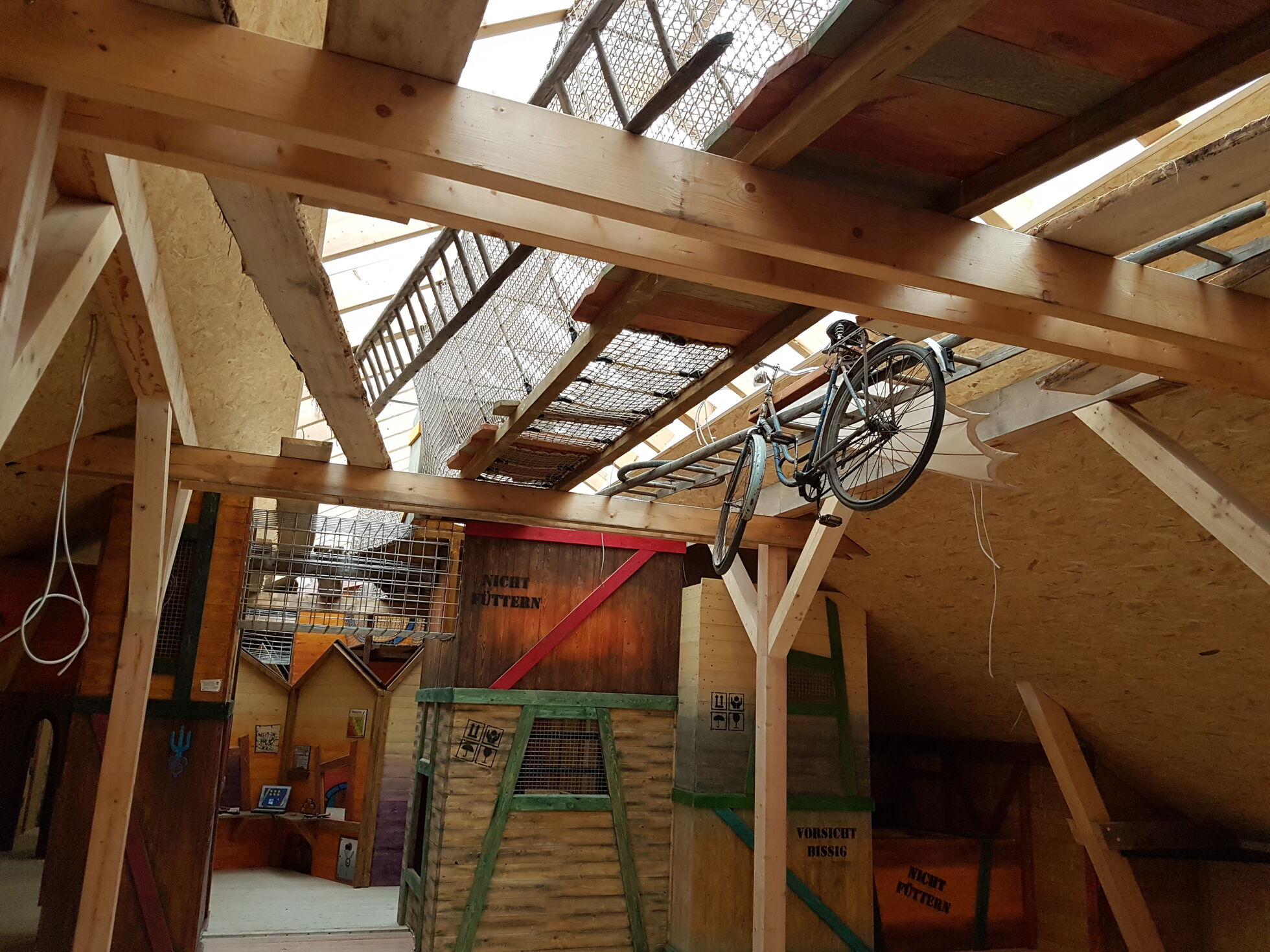 Für die KeHo-Halle stand die Erfindung ganz eigener Themen-Welten an: über dem Bereich „Stadtleben“ gibt es einmal den „Dschungel“ und gleich daneben den „Mangrovenwald“