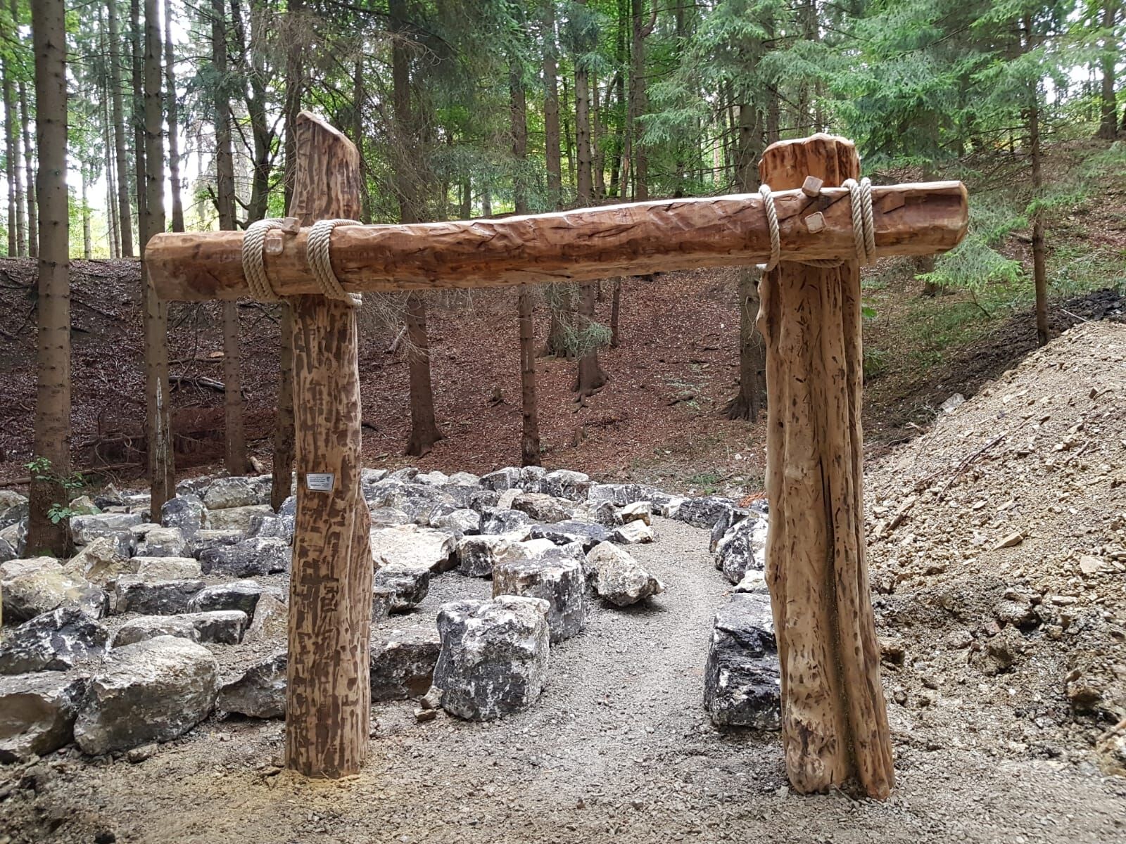 Ausgehend von den bedeutenden prähistorischen Funden im nahe gelegenen Tagebau wurde bei der Gestaltung dieses urigen Tales das Thema Steinzeit aufgegriffen. Im Zentrum steht ein Steinlabyrinth, danebengibt es steinzeitliche Unterkünfte als Grillhütten, Rasthütten und die Torgestaltung aus großen Natursteinen und archaischen Speeren.