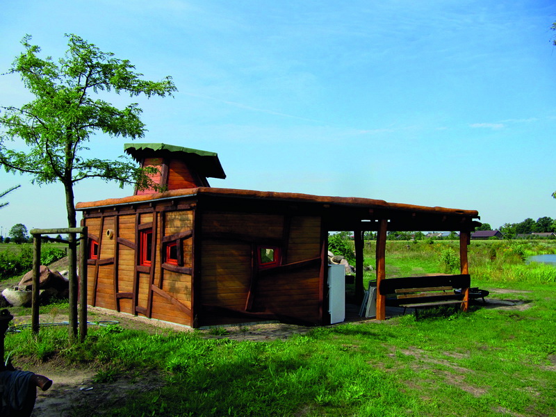 Wir sehen darin eine Zusammenfassung der unterschiedlichsten Dinge, die in sonst keine Rubrik passen. Ein schräges Grasdach in der Form einer Greifvogelsilhouette birgt unter sich eine kleine Naturschutzausstellung. Ein außergewöhnliches Buswartehäuschen hilft dem Dorf, einen eigenen Charakter zu finden, romantische Grillhütten, eindrucksvolle Eingangsbereiche, herausstechende Landschaftszeichen, Schutzhütten, Brücken und vieles mehr. Für jede spezielle Situation und Aufgabe wird etwas erfunden, was es so noch nirgendwo gibt.