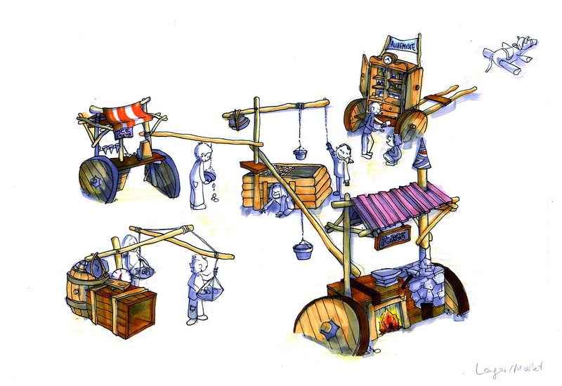 Die Grundform irrgärtnerisch-städtisch angeordneter Wandmodule ist erprobt, verlockend und für Erwachsene gut einsehbar – aber auch in sonstigen Anlagen (beispielsweise Piratenschiffe und Klettertürme) lassen sich problemlos Rollenspielgelegenheiten installieren.