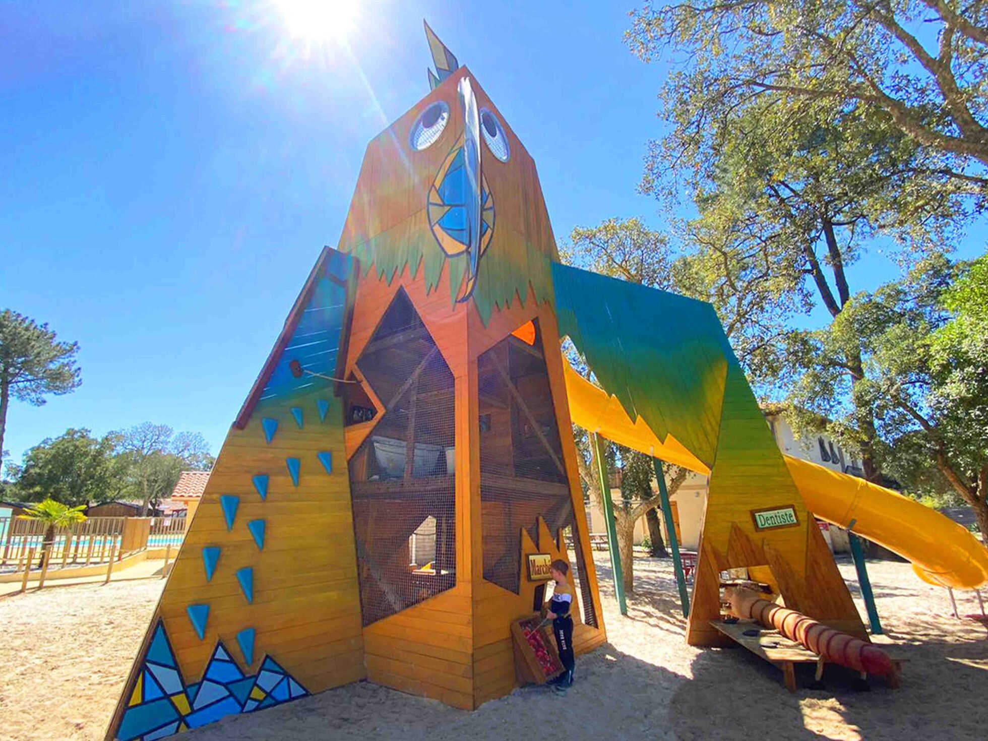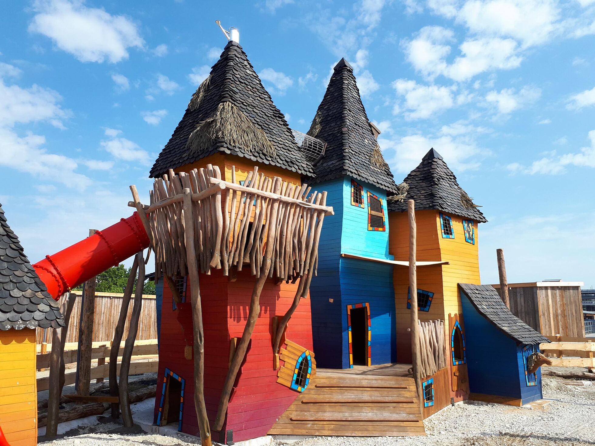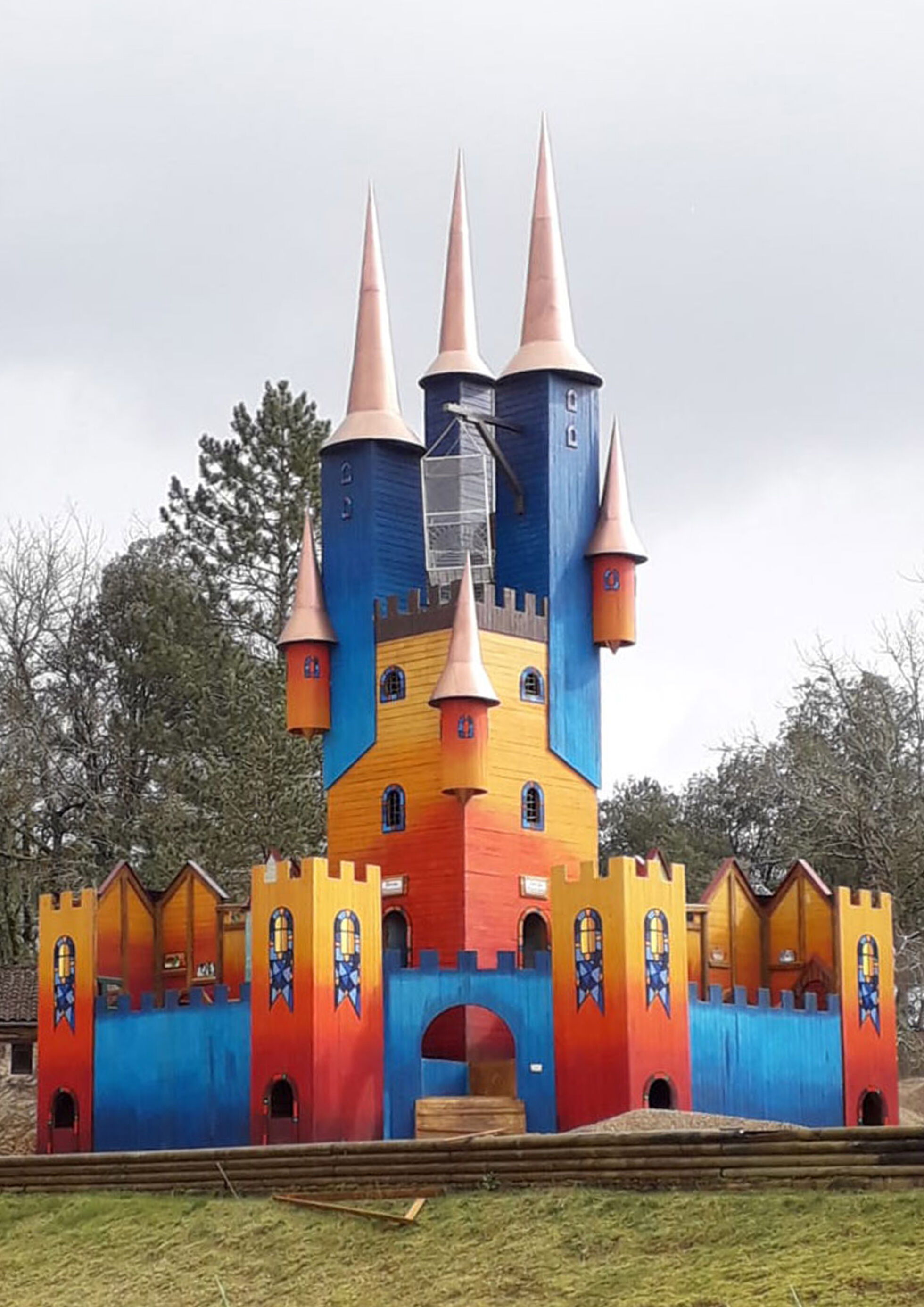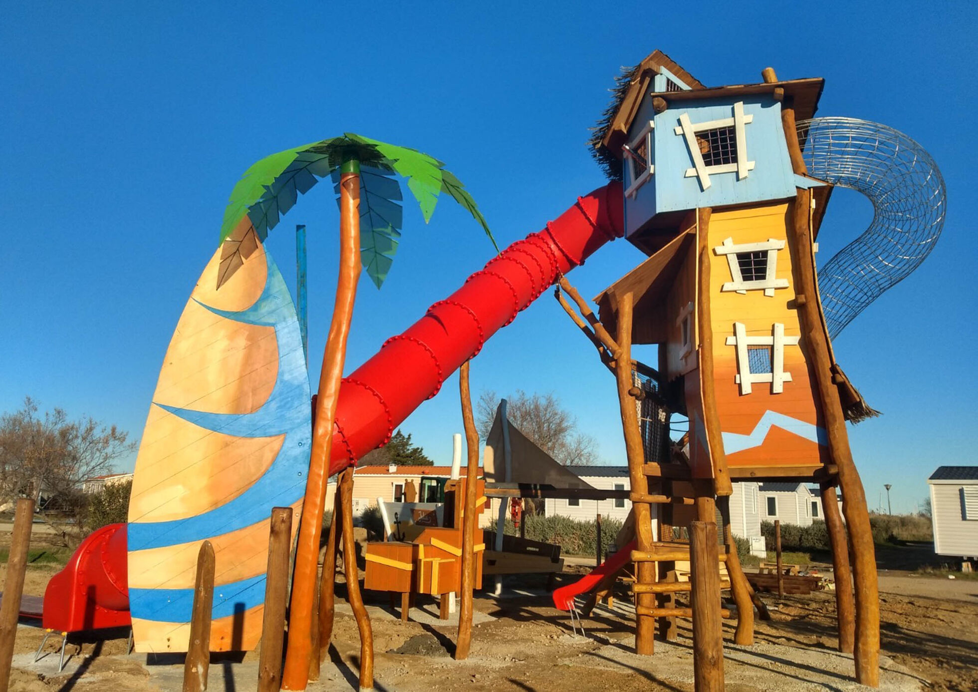 Eine Garantie für spannende Projekte bietet unsere Zusammenarbeit mit dem französischen Ferienpark-Betreiber Capfun. Komplette Spielanlagen stecken hier z.B. im Drachen, Schiff, Schloss oder Einhorn. Dieses ist auch noch doppelsinnig: die eine Seite ein romantisches geflügeltes, bekletterbares Traumwesen – die andere eine bunte Spielstadt mit Rollenspiel und Rutsche.