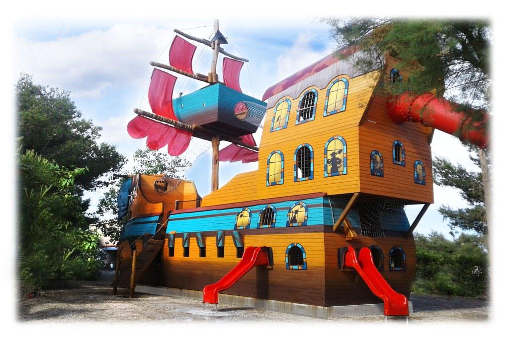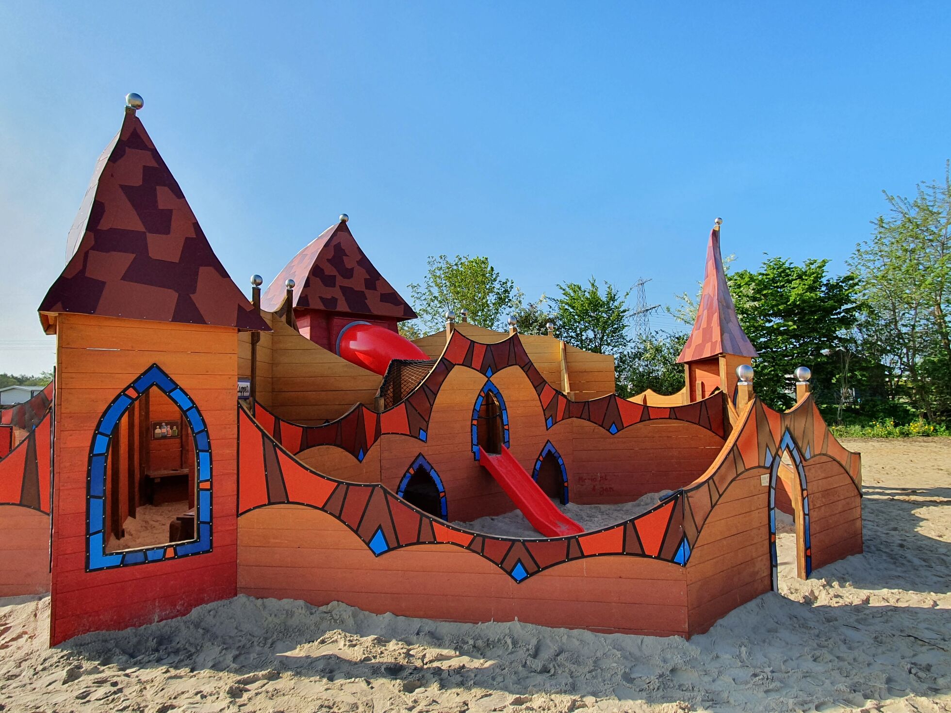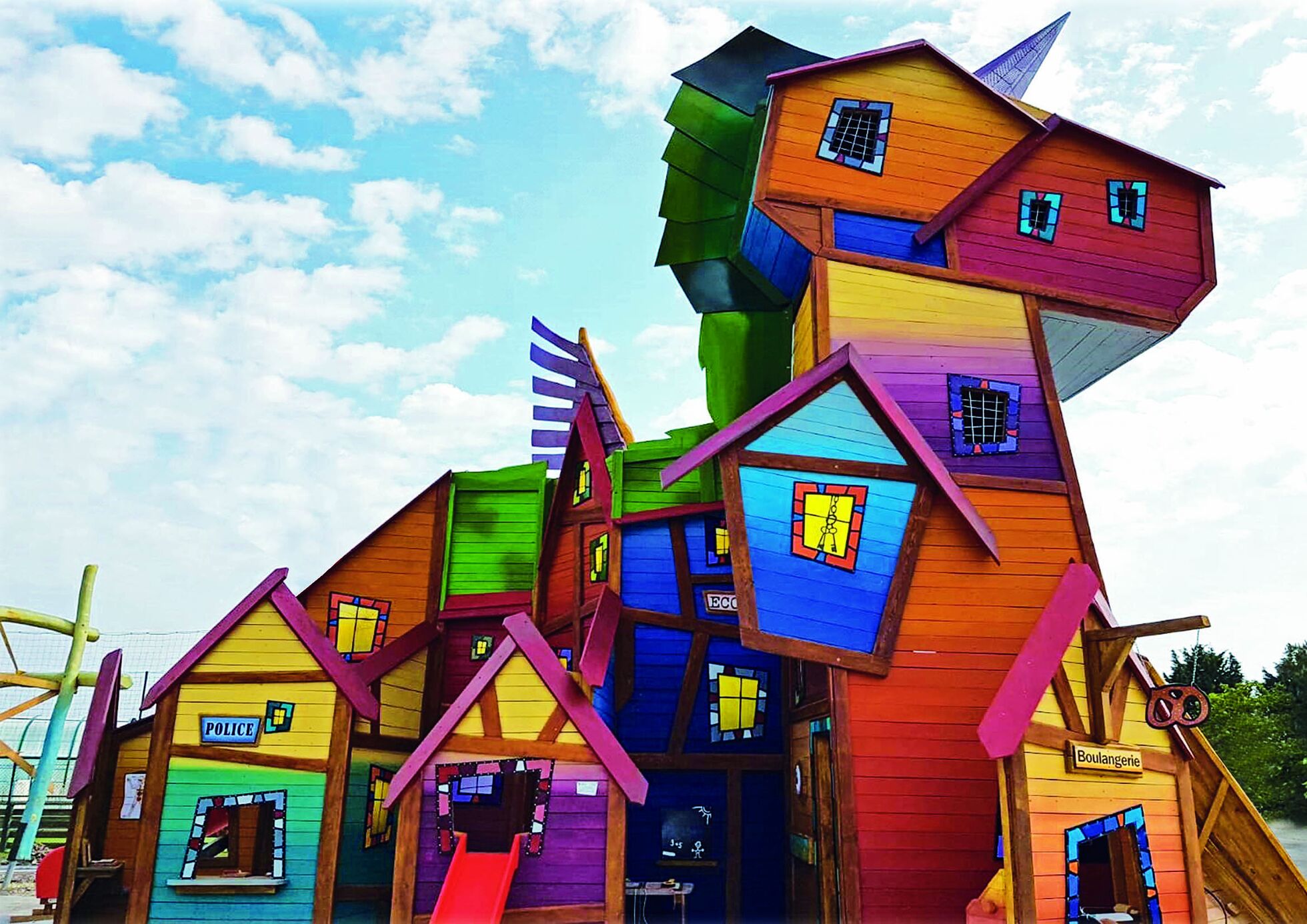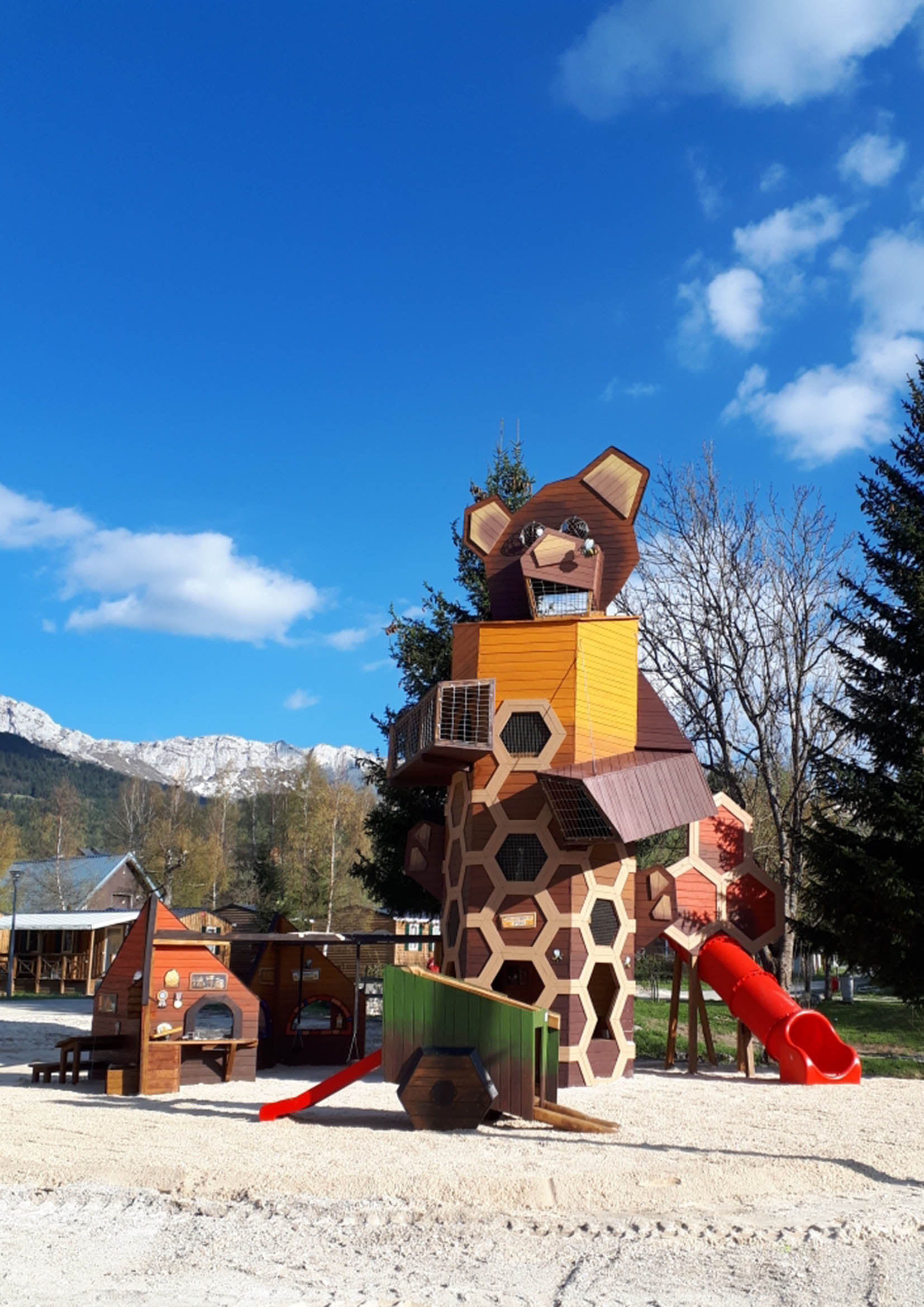 Eine Garantie für spannende Projekte bietet unsere Zusammenarbeit mit dem französischen Ferienpark-Betreiber Capfun. Komplette Spielanlagen stecken hier z.B. im Drachen, Schiff, Schloss oder Einhorn. Dieses ist auch noch doppelsinnig: die eine Seite ein romantisches geflügeltes, bekletterbares Traumwesen – die andere eine bunte Spielstadt mit Rollenspiel und Rutsche.