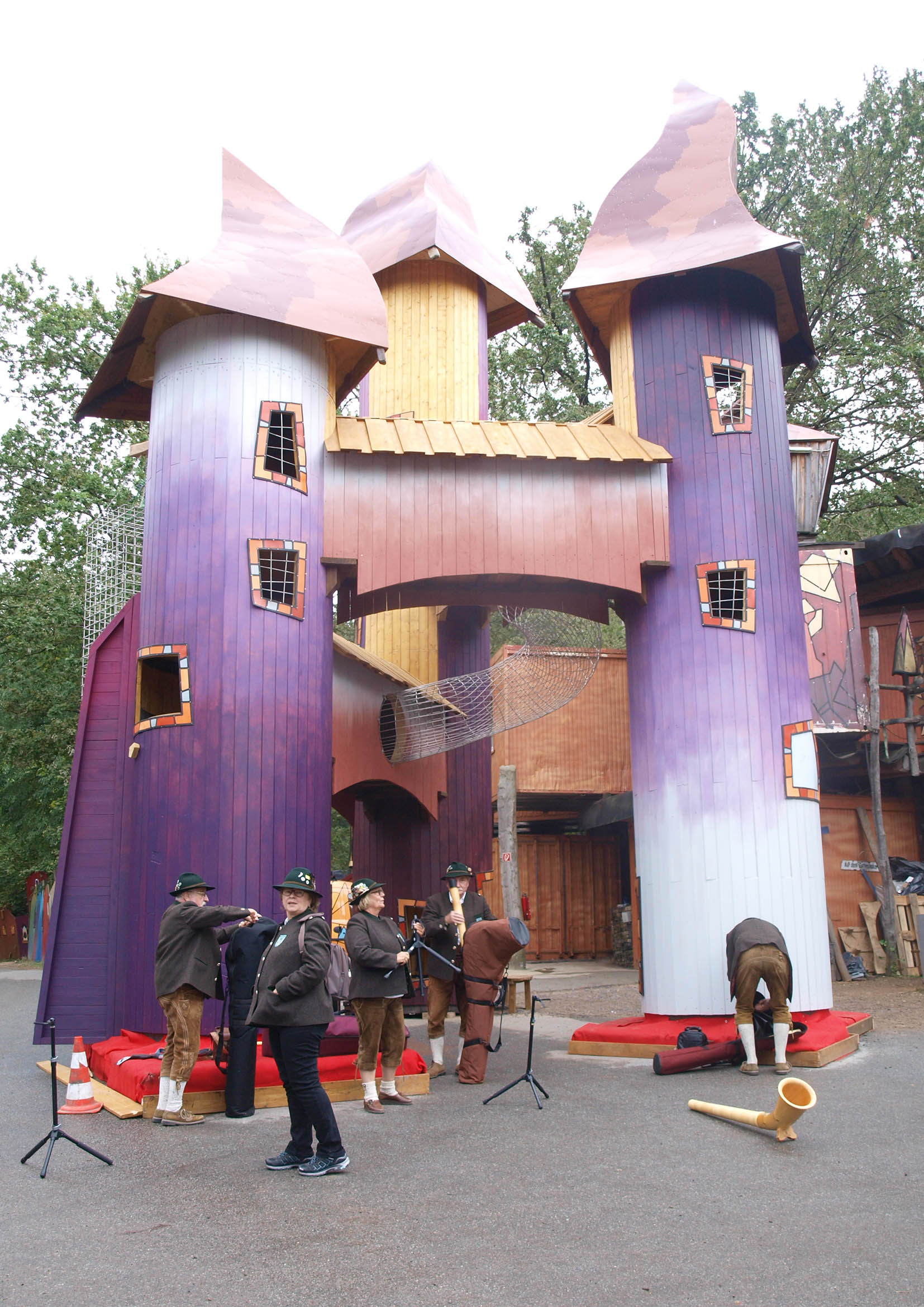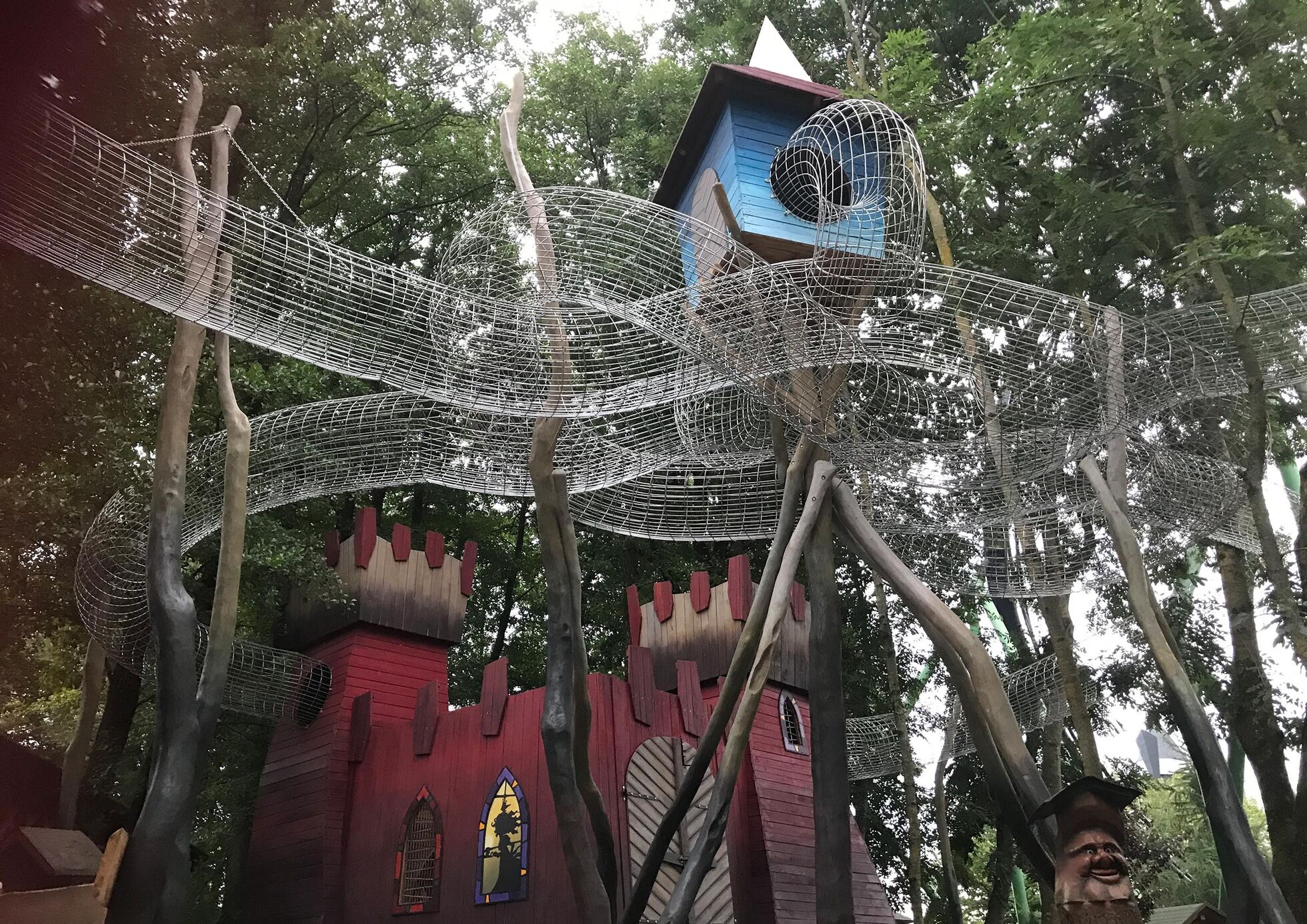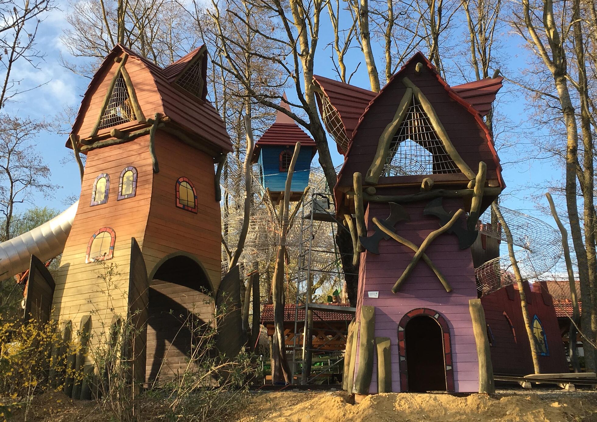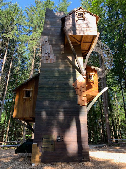 Ein weiteres Projekt im Familien-Abenteuer-Land: Der Wald, um den der Zwergerlzug seine Kreise zieht, wird zum Abenteuerwald. Markante Türme, ein mystisches Schloß und ein verrücktes „Vogelhaus“ sind durch einen unglaublichen Knoten von Gitterröhren in 4-7m Höhe verbunden.