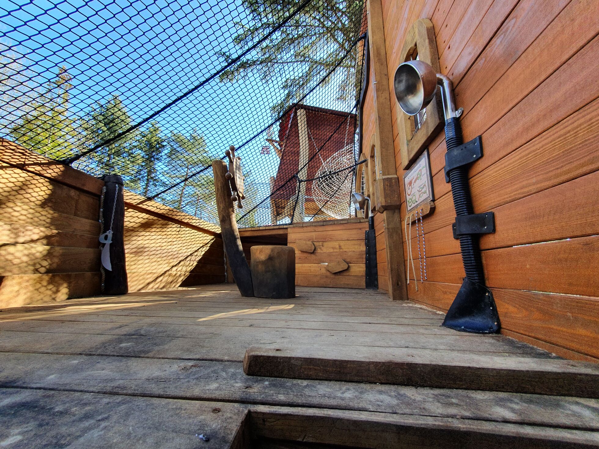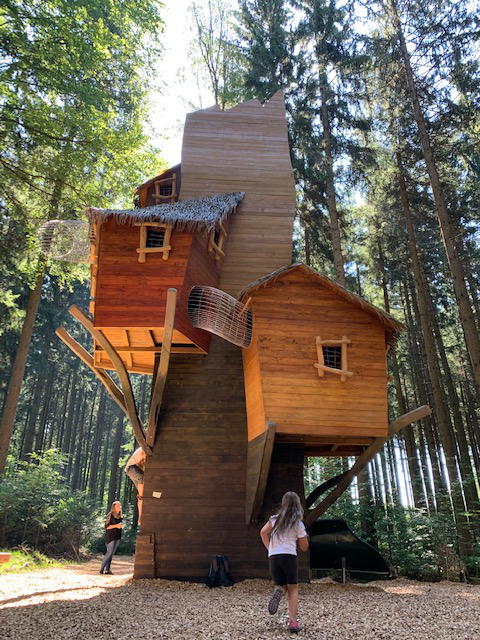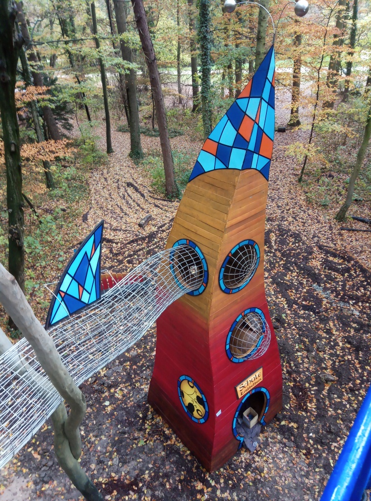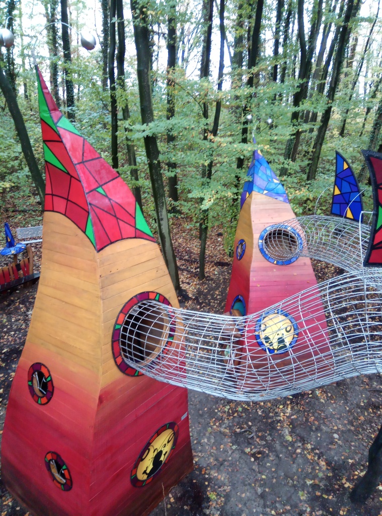 Ein weiteres Projekt im Familien-Abenteuer-Land: Der Wald, um den der Zwergerlzug seine Kreise zieht, wird zum Abenteuerwald. Markante Türme, ein mystisches Schloß und ein verrücktes „Vogelhaus“ sind durch einen unglaublichen Knoten von Gitterröhren in 4-7m Höhe verbunden.
