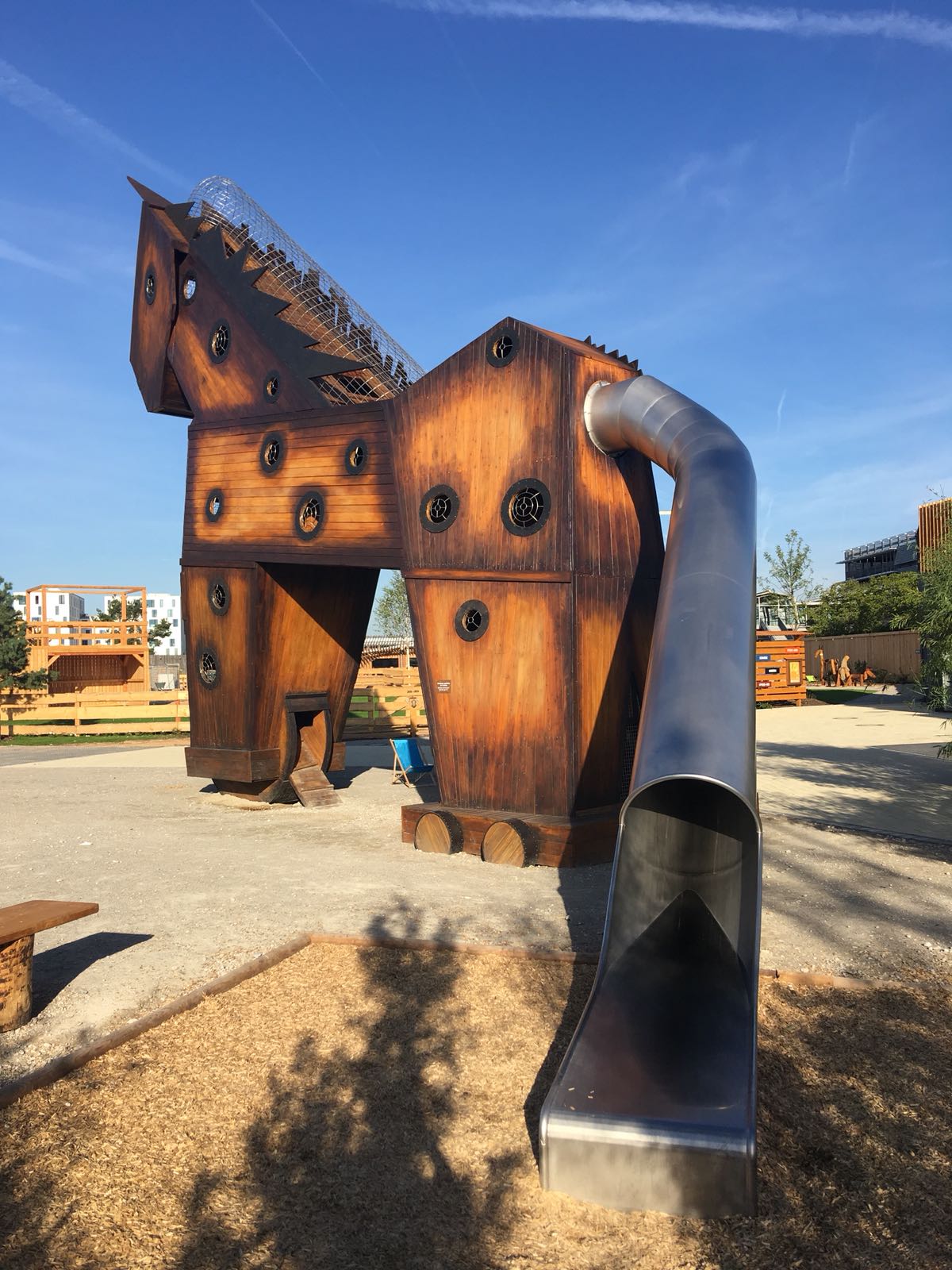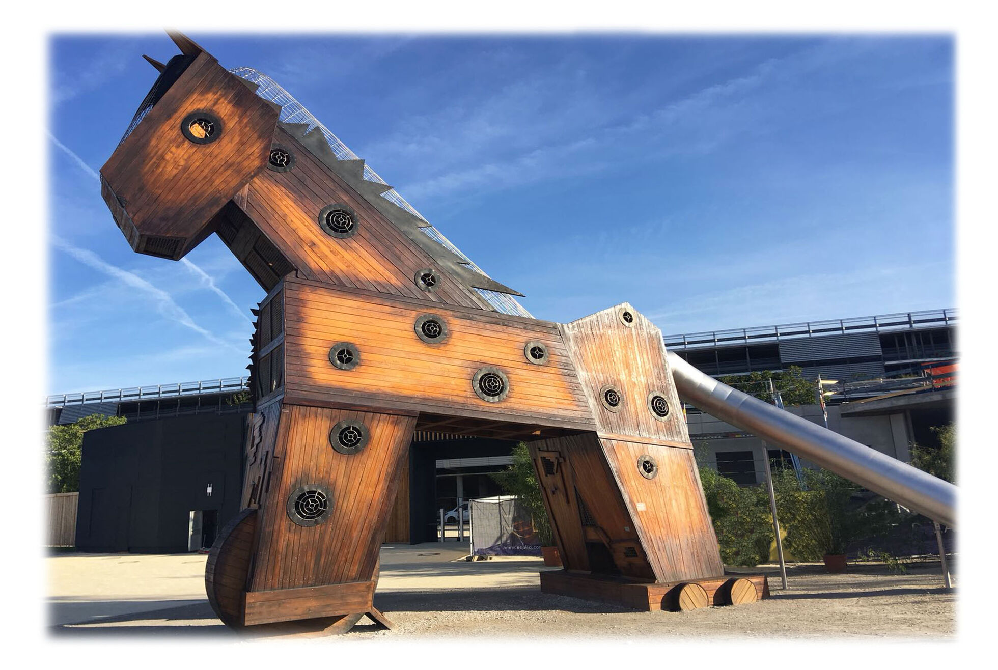 Da steht ein Pferd auf dem ... Nein nicht Flur. Das trojanische Pferd steht im Equilaland in München - welchen unsere Künstleriche Holzgestaltung Bergmann GmbH mit entwickelt hat. Erst kürzlich wurde dieser einzigartige Park eröffnet, welcher Gäste auf eine Abenteuerreise durch die Welt der Pferde nimmt. Auf einer Fläche von 50.000 Quadratmetern wird in elf Themenpavillons Wissen vermittelt und fantasievoll entdeckt.