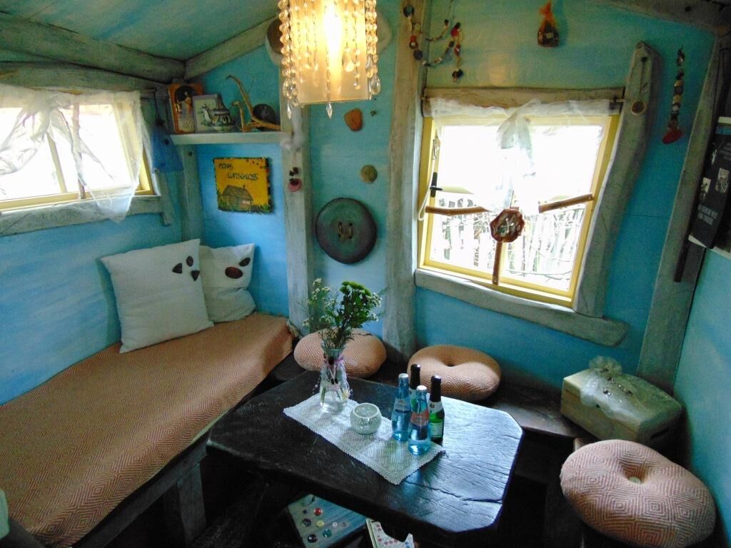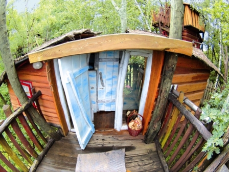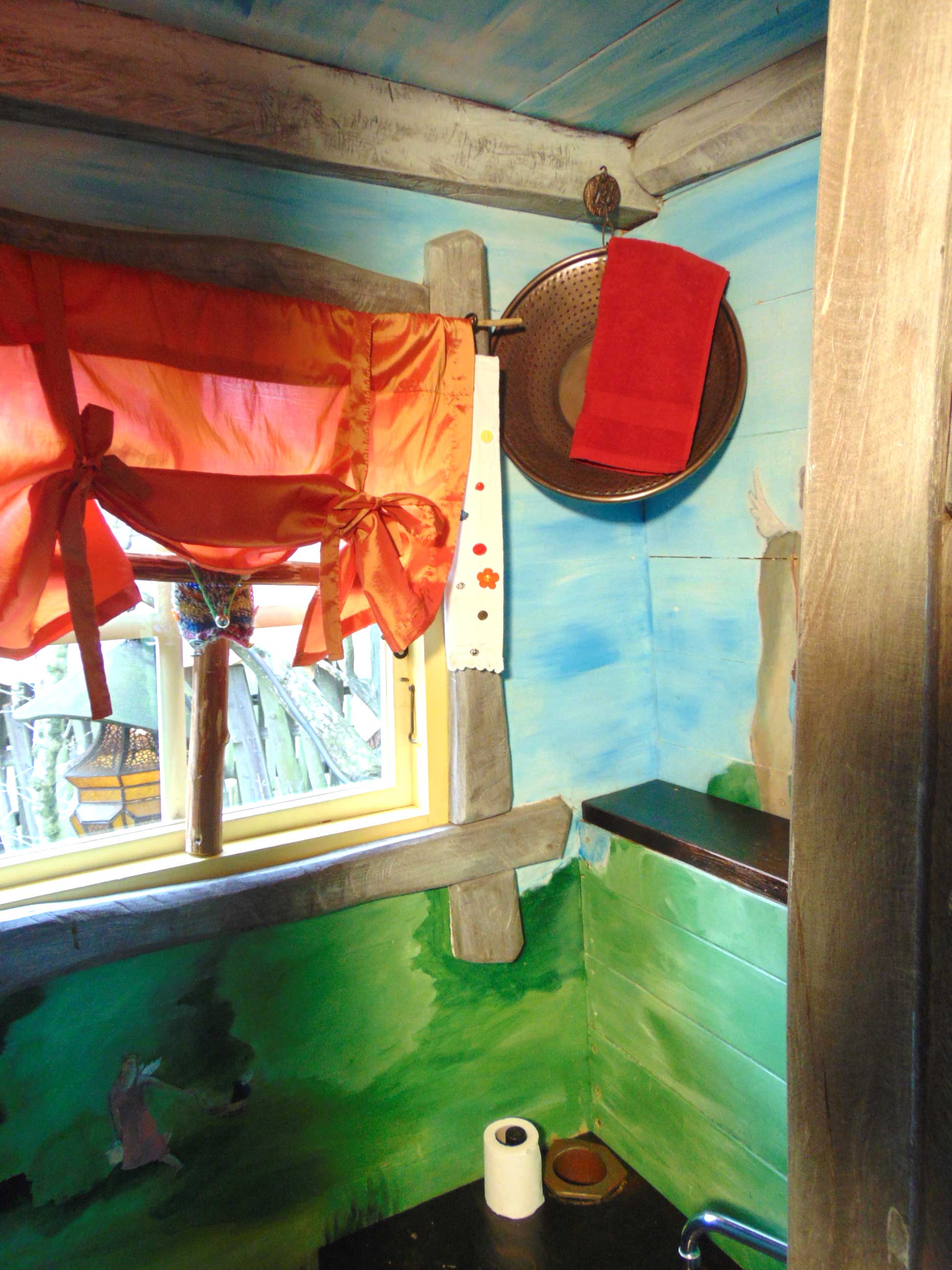 (Prosimy pamiętać, że woda w domkach na drzewie musi być wyłączona w miesiącach zimowych, ponieważ rury mogą zamarznąć z powodu mrozu. Toalety i prysznice znajdują się wtedy w ziemiance, zaledwie ok. 20 metrów od hotelu z domkami na drzewie).