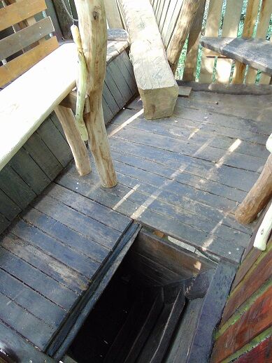 (Prosimy pamiętać, że woda w domkach na drzewie musi być wyłączona w miesiącach zimowych, ponieważ rury mogą zamarznąć z powodu mrozu. Toalety i prysznice znajdują się wtedy w ziemiance, zaledwie ok. 20 metrów od hotelu z domkami na drzewie).