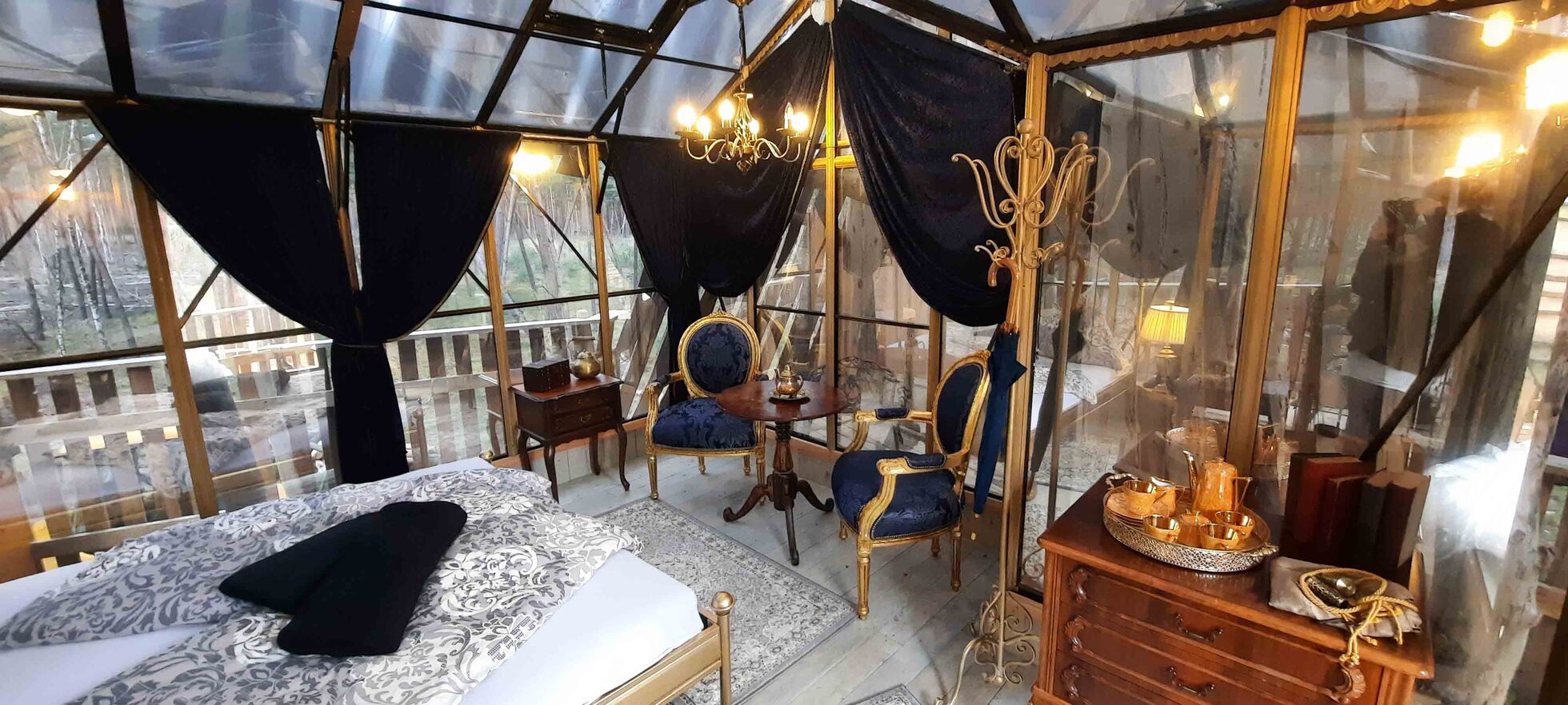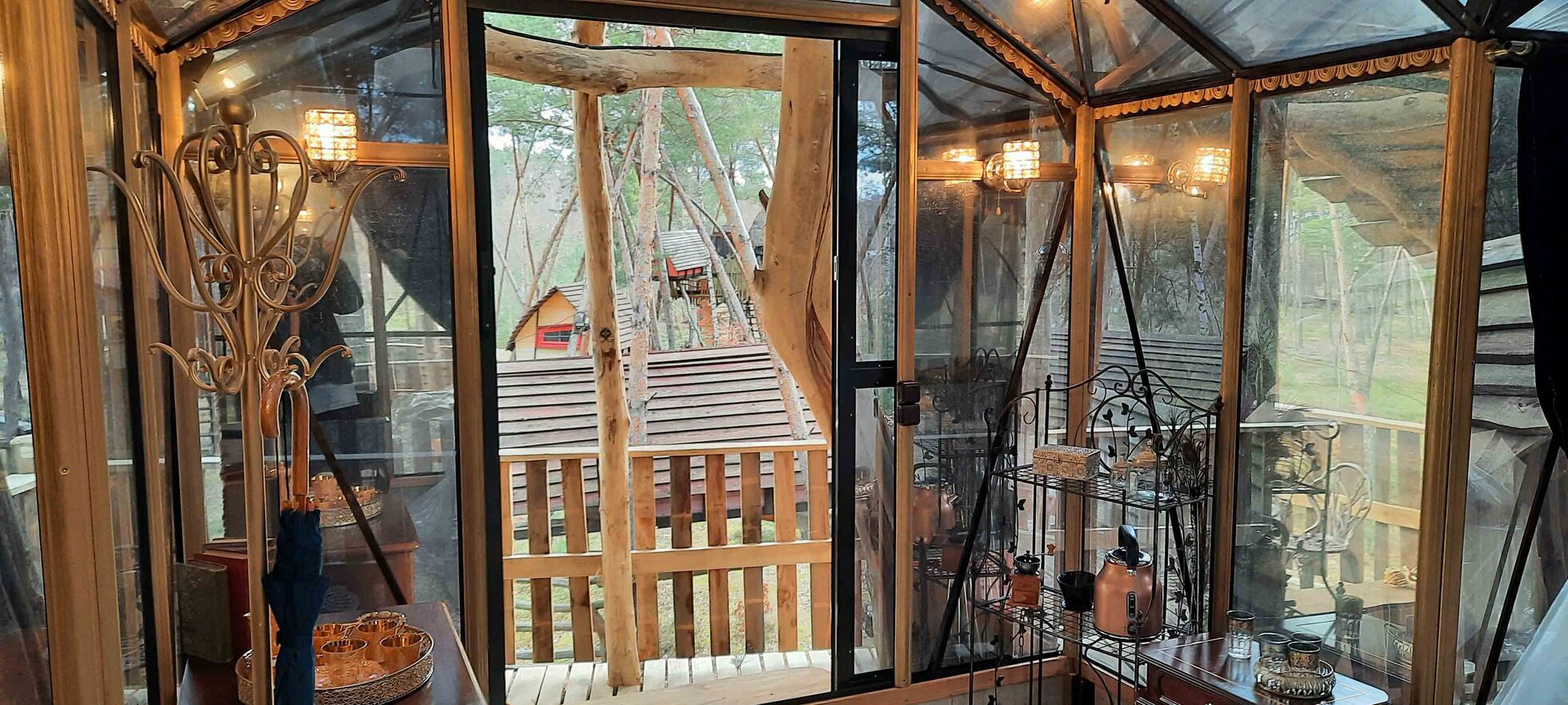 Jego credo rozglądania się dookoła i daleko jest dosłownie odzwierciedlone w dużej części szkła, które odsłania genialny widok na okolicę i na życie samego drzewa. Szkło weneckie pozwala stanąć bardzo blisko okna i pozostać niezauważonym ani dla wiewiórki, ani dzięcioła, ani sikorki. Beztrosko zajmują się one swoimi sprawami.
