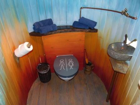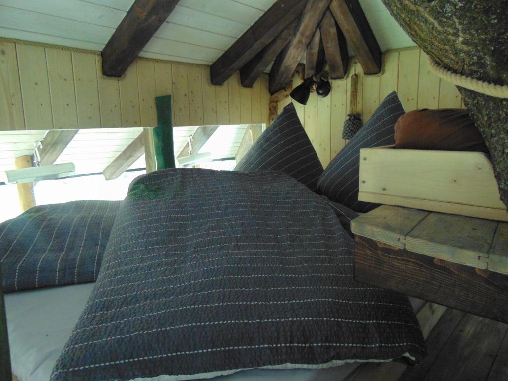 (Prosimy pamiętać, że woda w domkach na drzewie musi być wyłączona w miesiącach zimowych, ponieważ rury mogą zamarznąć z powodu mrozu. Toalety i prysznice znajdują się wtedy w ziemiance, zaledwie ok. 20 metrów od hotelu z domkami na drzewie).