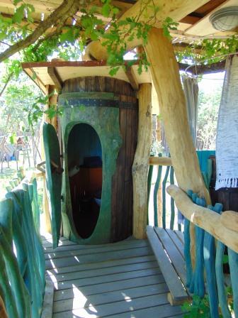 Ów domek na drzewie posiada własne WC oraz prysznic z (jeszcze) zimną wodą.