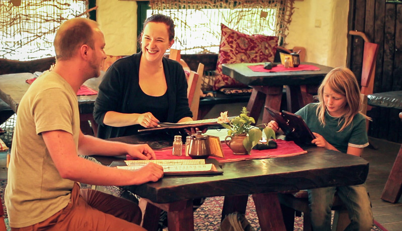 Gastronomia niezapomnianych przeżyć. Błogo trzaskające iskry w 5 kominkach i na grillu do wynajęcia, przy których można podpiec sobie pyszne szaszłyki. Wielką atrakcją są pstrągi, które można samemu złowić, a kuchnia pomoże w ich przygotowaniu. Wieczorem obsługujemy również gości relaksujących się w LeniuChowie (Faulenzum).