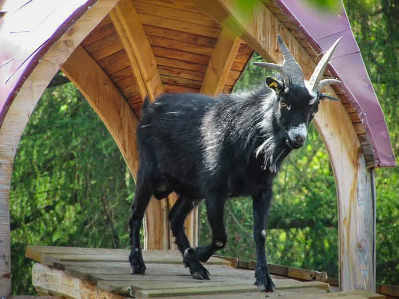W oplecionej zielenią krainie przygody Kulturinsel baraszkują sobie również niezwykle rzadko występujące kozy czterorogie, które doczekały się już niejednego potomka. Ale to nie jedyne "cztery rogi", które możecie u nas spotkać! Również owce czterorogie (zwane owcami Jacoba) pokazują dumnie gościom parku swoje okazałe nakrycie głowy.
